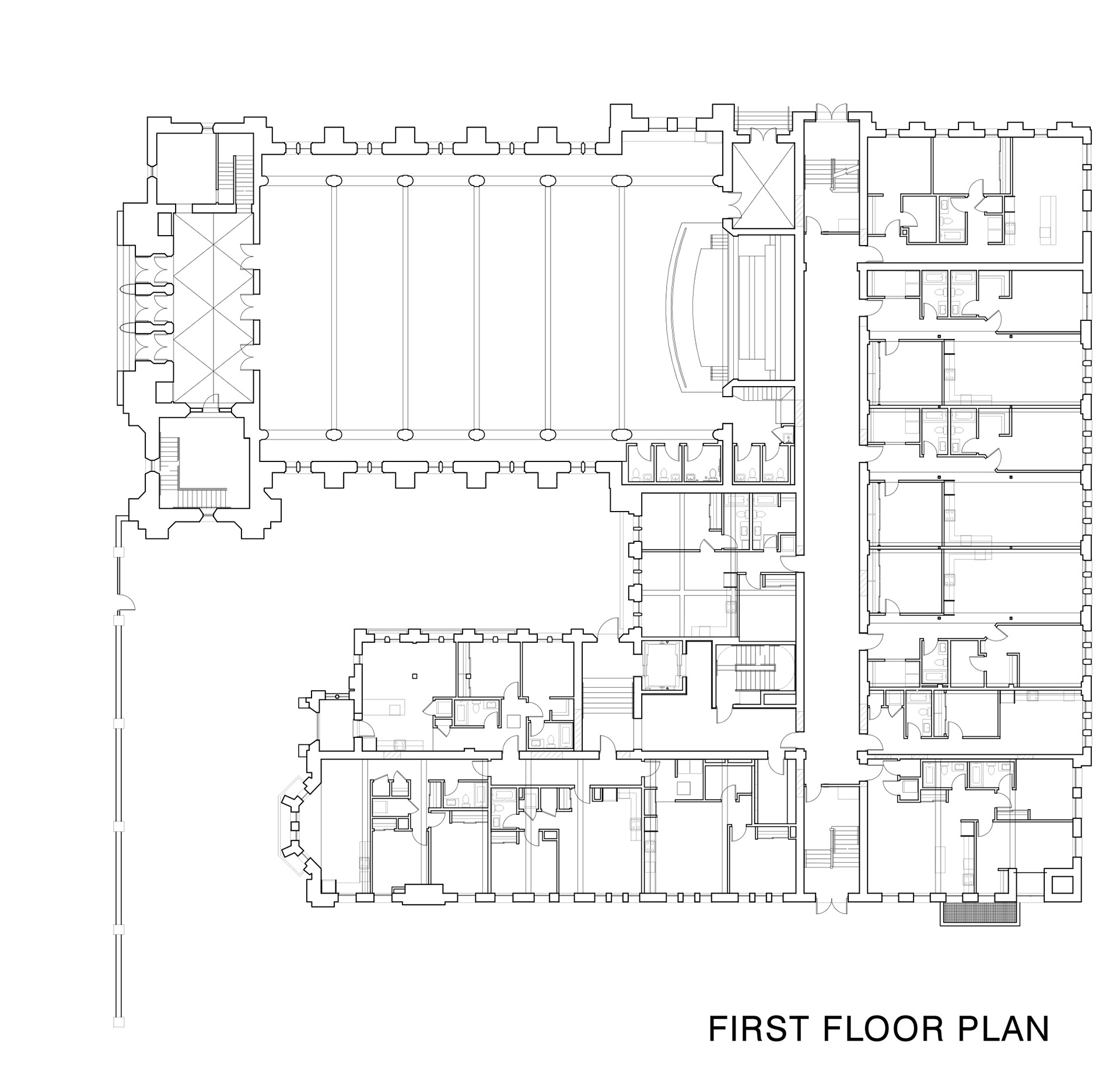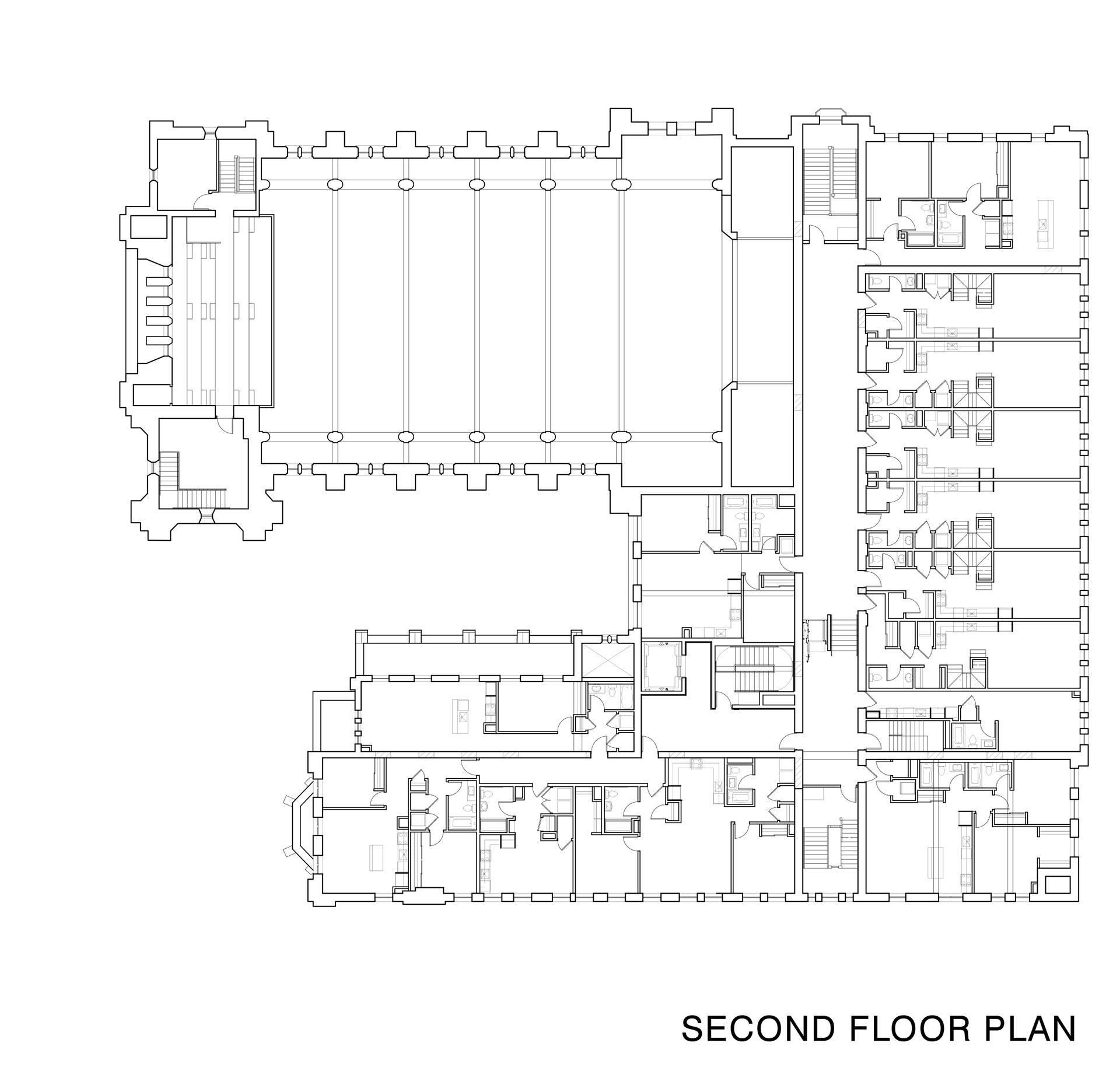 Renovation of an old monk sanctuary and campus buildings on the south side of Chicago. The project renovated the existing to fit residential units and a large shared work space.